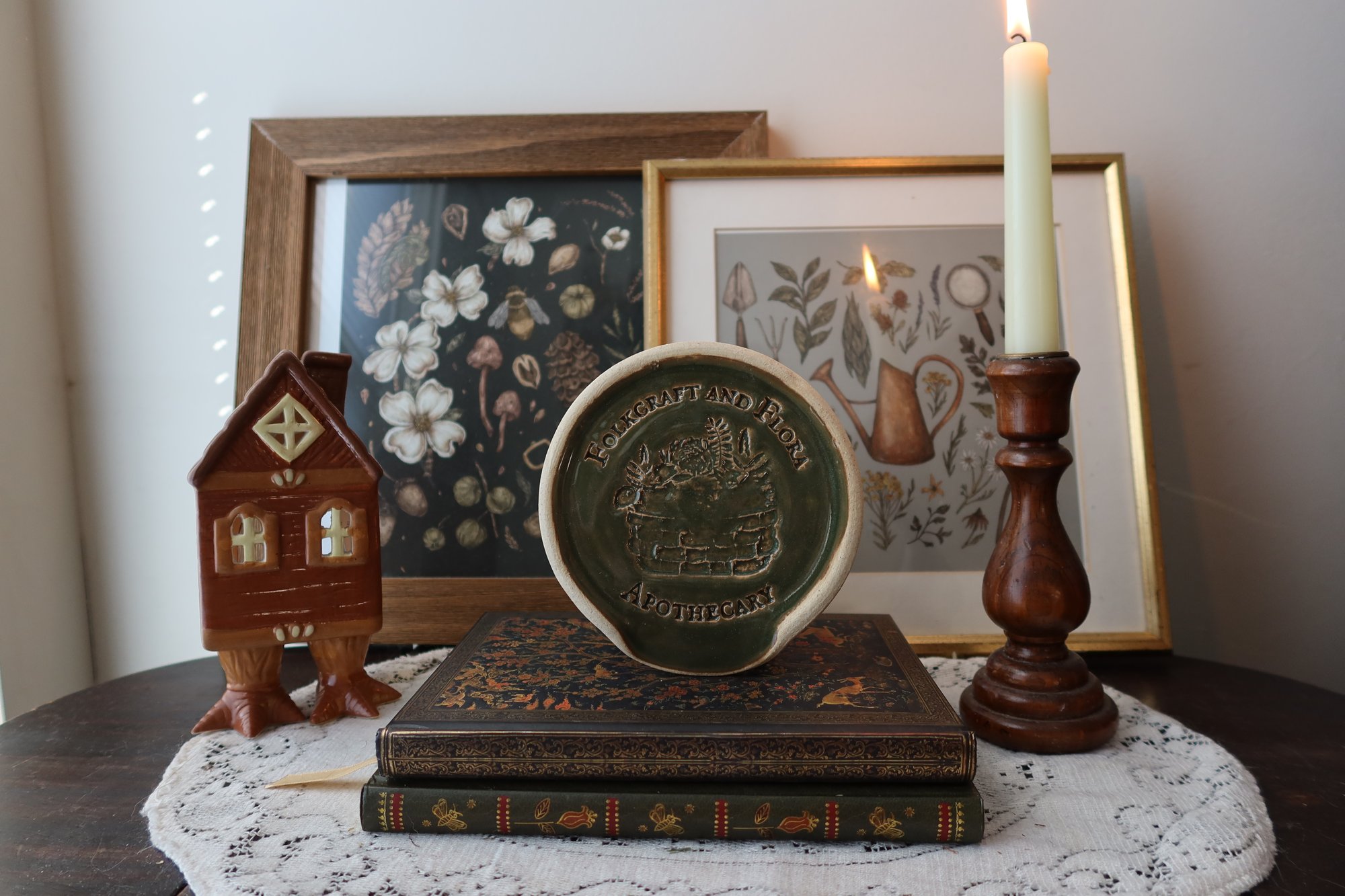 We partnered with Swan City Ceramics in Florida (Where my husband grew up and I spent a good portion of my adolescent years!) for an enchanted collaboration. I was so honored to have been approached by them and when I mentioned the idea, they hit the ground running and truly exceeded all of my expectations. This rest is handmade and stamped with our logo and is the perfect addition to your personal magical crafting within the kitchen, hearth and home!